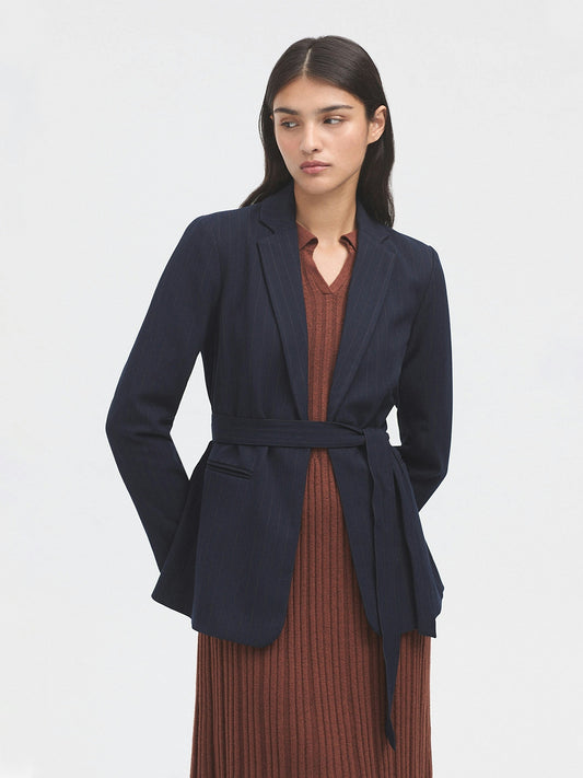 Nice Things - Navy Blazer met bruine krijtstreep - WWT035