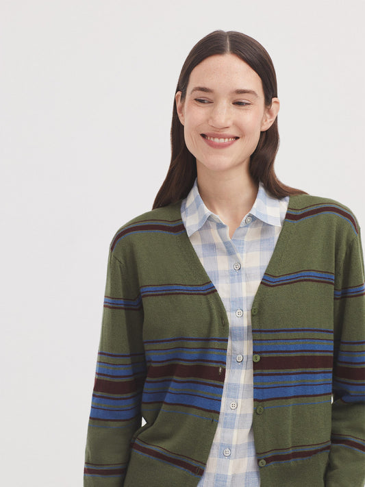 Nice Things - Tin gauge tricolor stripe cardigan - Dark Khaki