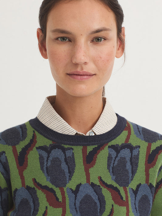 Nice Things - Tulips jacquard sweater - Kiwi green