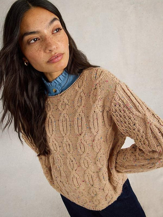White Stuff - Cable Nep Funnel Jumper - Dark natural