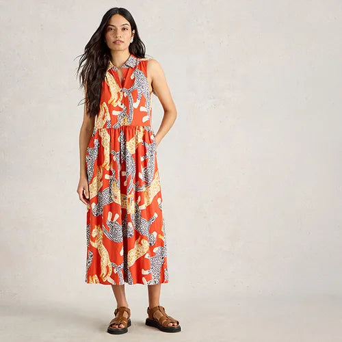 White Stuff- Rylee Jersey Shirt Dress - Red multi